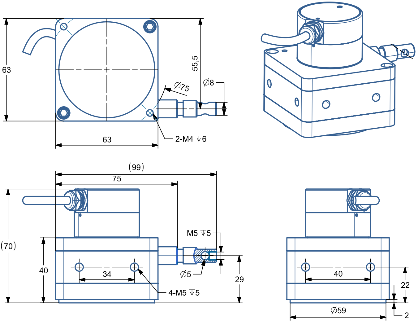 IP54 BRT38系列4米/5米拉绳位移传感器安装尺寸图